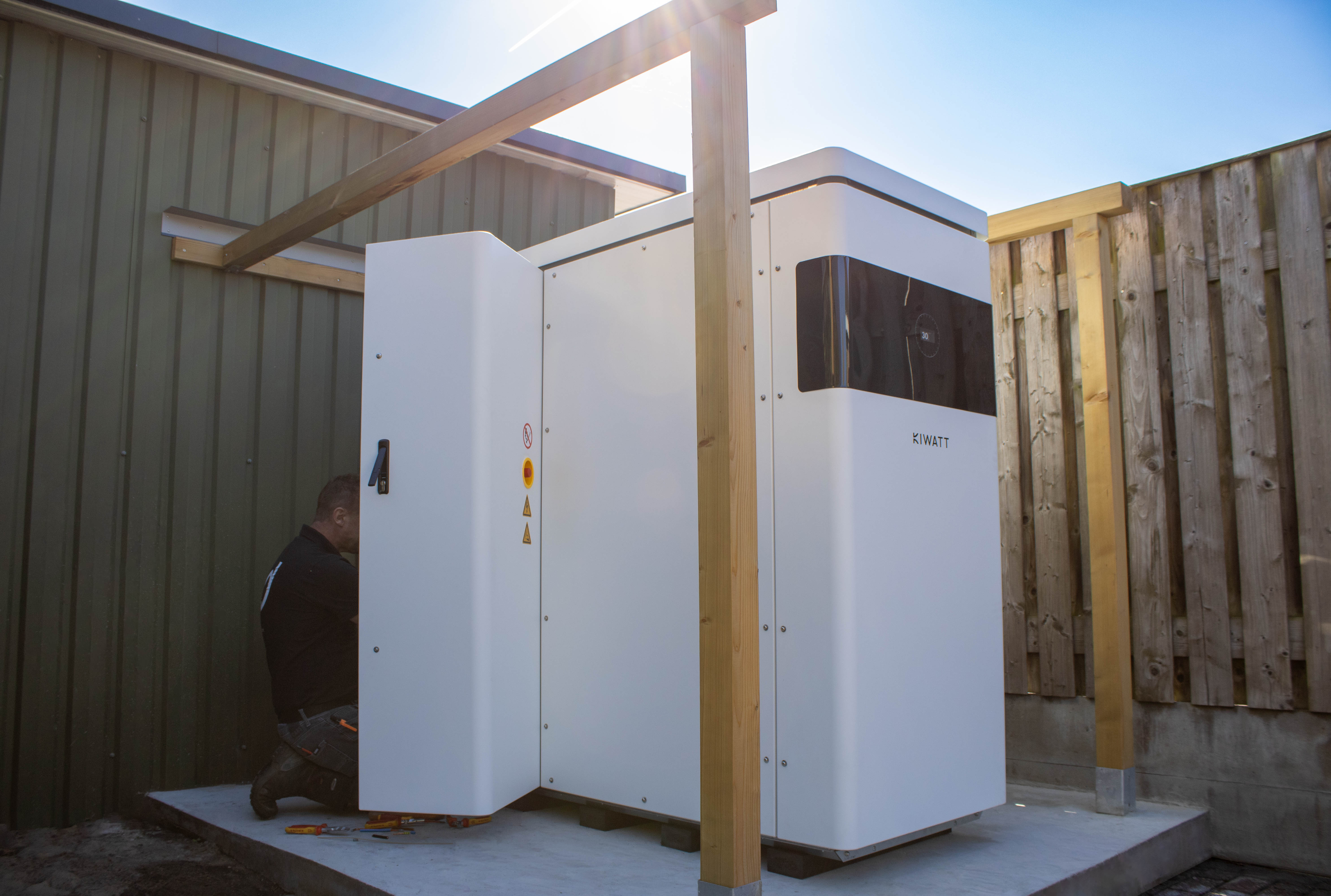 Kiwatt bood de perfecte oplossing met de plaatsing van een PowerCabinet Outdoor 30 kW–140 kWh. Deze batterij maakt het mogelijk om de overdag opgewekte energie tijdelijk op te slaan en op piekmomenten slim in te zetten. Voor Veneberg speelde ook mee dat Kiwatt een Nederlands product is, wat hem extra vertrouwen gaf en waarde toevoegt. Daarnaast was hij de eerste ondernemer die met een PowerCabinet Outdoor aan de slag ging en daarmee de stap durfde te zetten naar een innovatieve vorm van energieopslag.